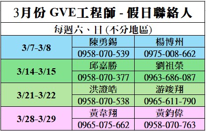 若 貴司有緊急狀況時,按照下方時間與我司人員聯絡。