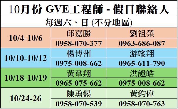 若 貴司有緊急狀況時,按照下方時間與我司人員聯絡。